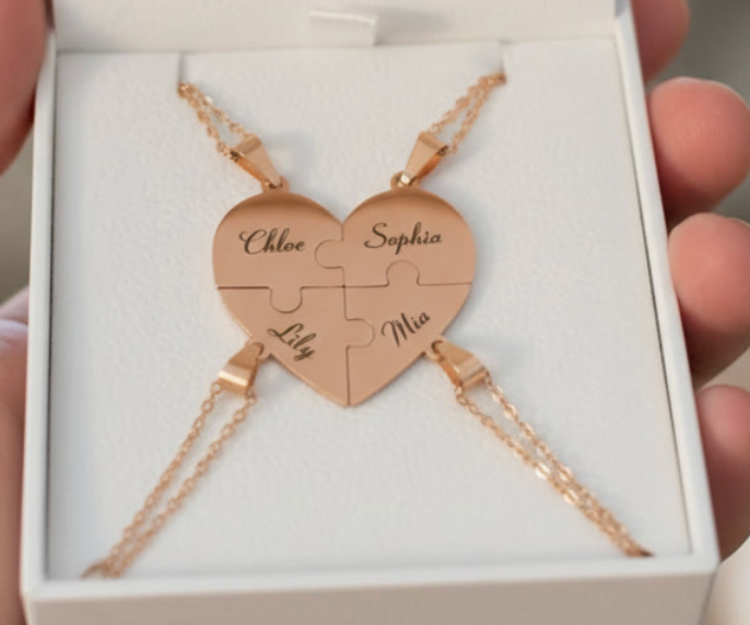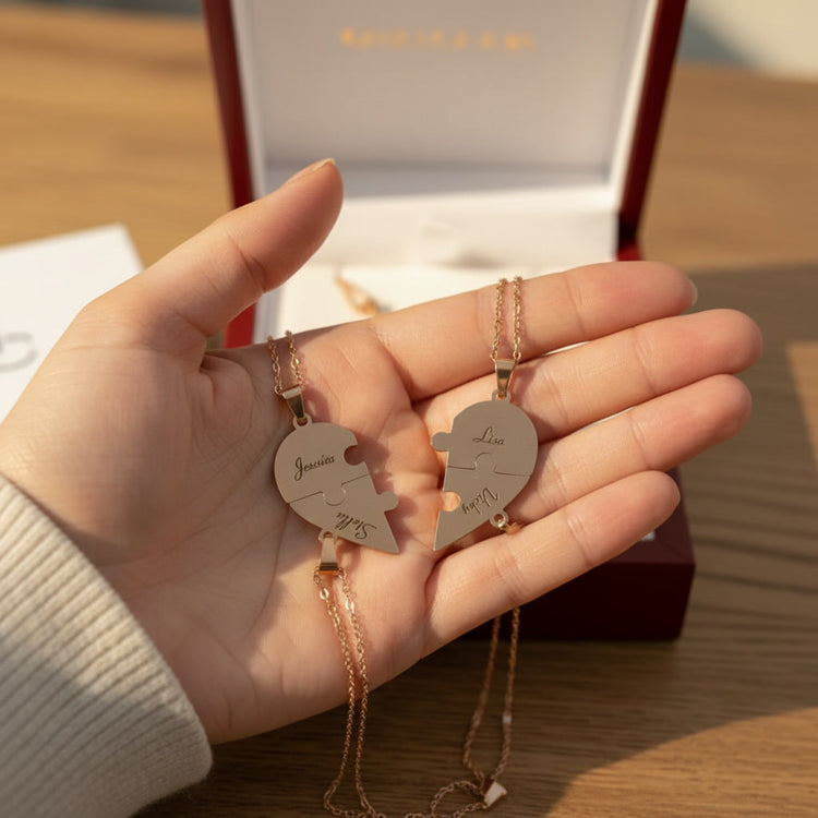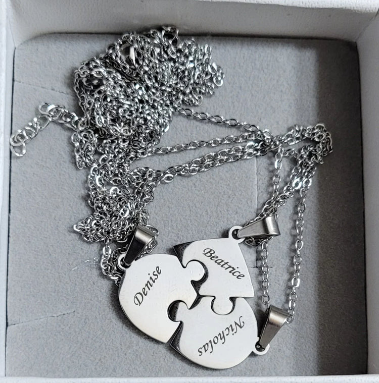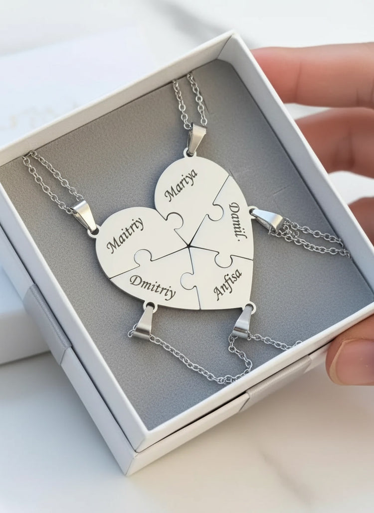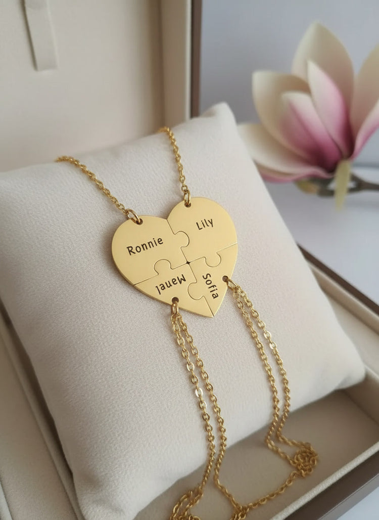 Transformez vos liens familiaux en bijou précieux. Chaque pièce puzzle gravée célèbre l'amour unique qui unit votre famille pour toujours.